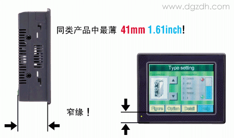| 窄边缘紧凑结构( 厚度41mm ) 厚41mm ,本业界最薄,液晶边缘也是同类产品中最薄 |